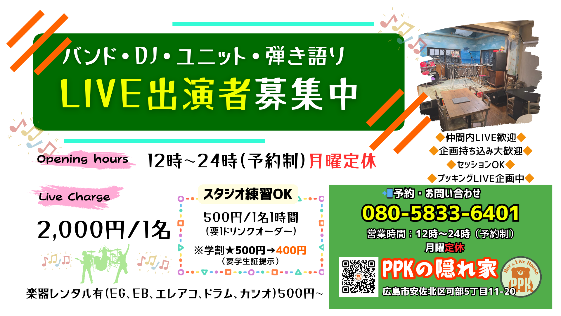アニソン&DJイベントを得意とする隠れ家には、少人数バンドやユニット大歓迎の機材が揃っています♪